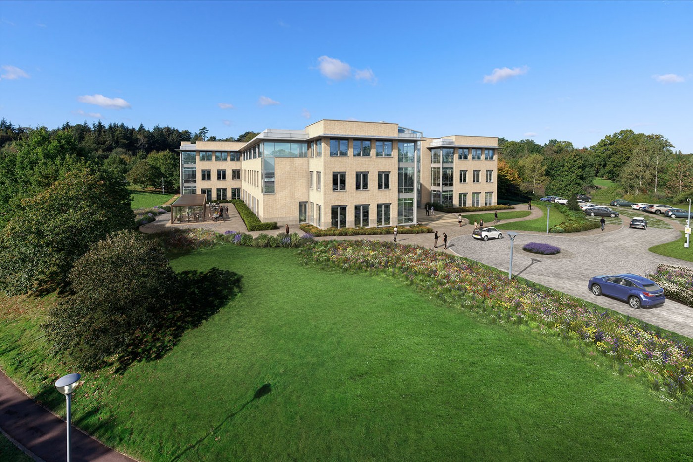 1000 Hillswood Park is a newly refurbished office building with a focus on sustainability and an enhanced working environment.