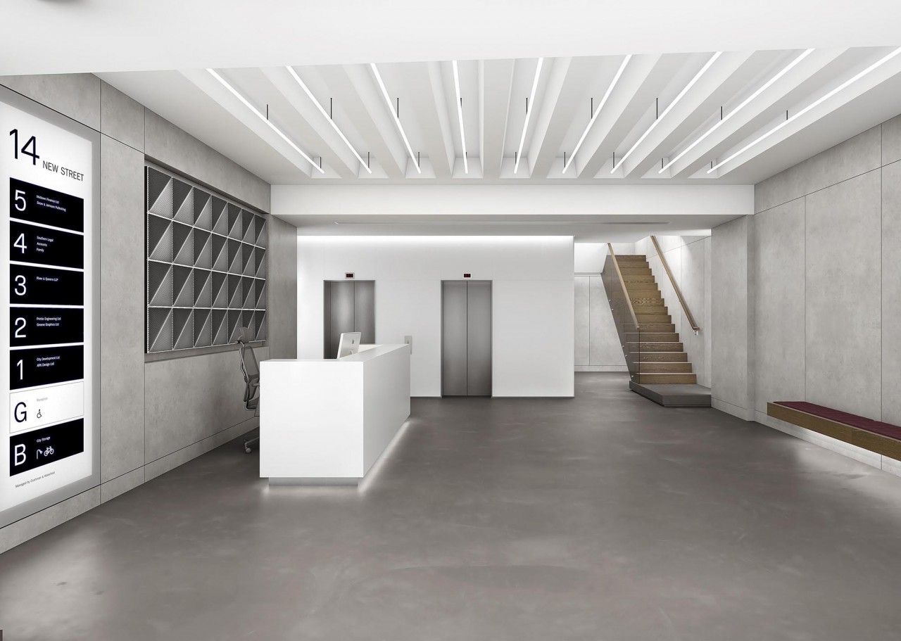 The project involves the refurbishment and expansion of 14 New Street, a 1980s office building located in the vicinity of Liverpool Street Station.