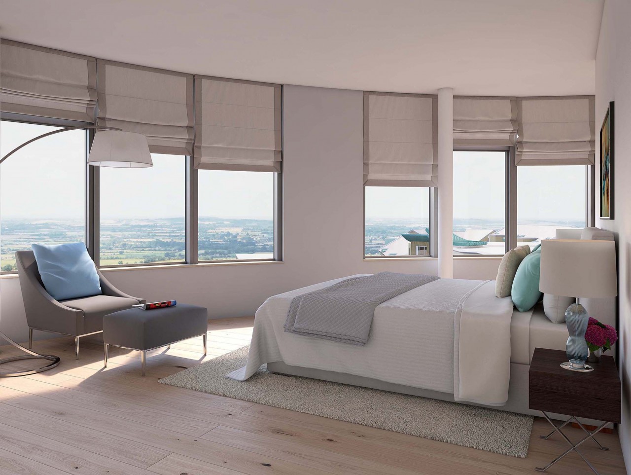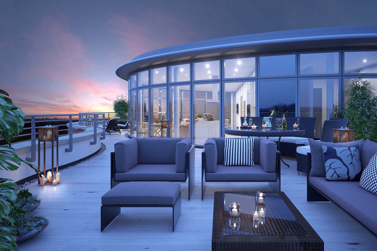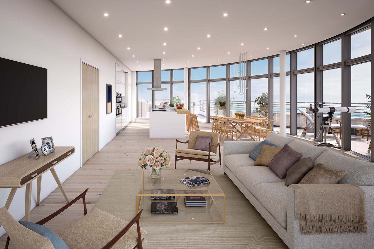 Thanks to its circular design, the Penthouse at Brewery Square enjoys the finest panoramic views of Dorchester and the surrounding area. Therefore eye-kon was commissioned several interior visuals plus a virtual reality visual (VR Pano360) to be used in the marketing brochure by Savills.
